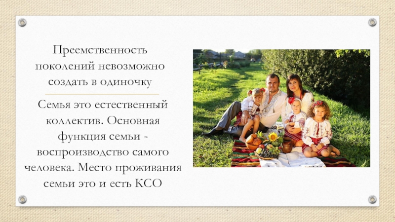 Коллективной среды обитания, как основы сохранения преемственности поколений.