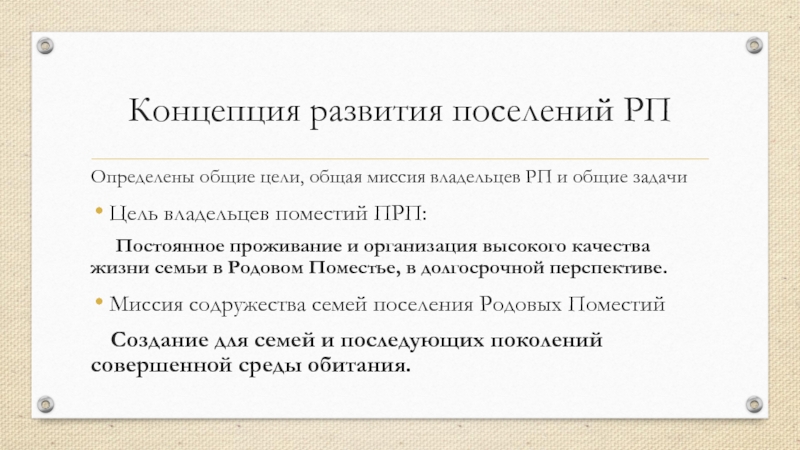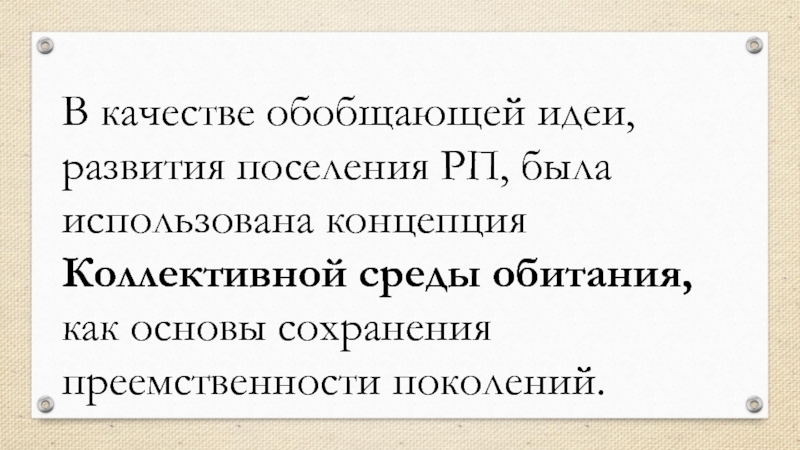 Слайд 16В качестве обобщающей идеи, развития поселения РП, была использована концепция