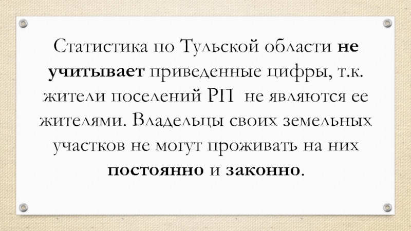 Слайд 11Статистика по Тульской области не учитывает приведенные цифры, т.к. жители