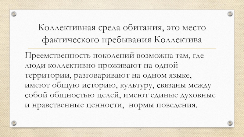 Слайд 17Коллективная среда обитания, это основа сохранения преемственности поколений