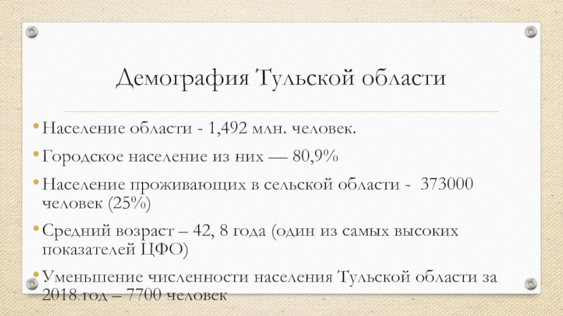 Уменьшение численности населения Тульской области за 2018 год – 7700 человек