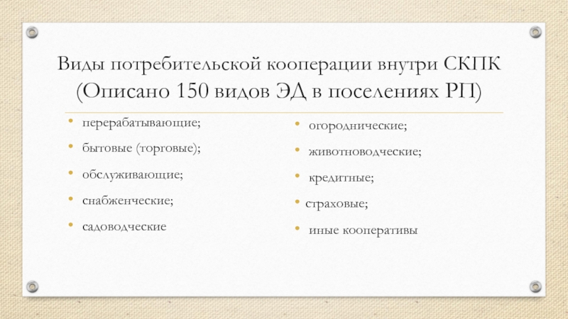 Слайд 32Виды потребительской кооперации внутри СКПК