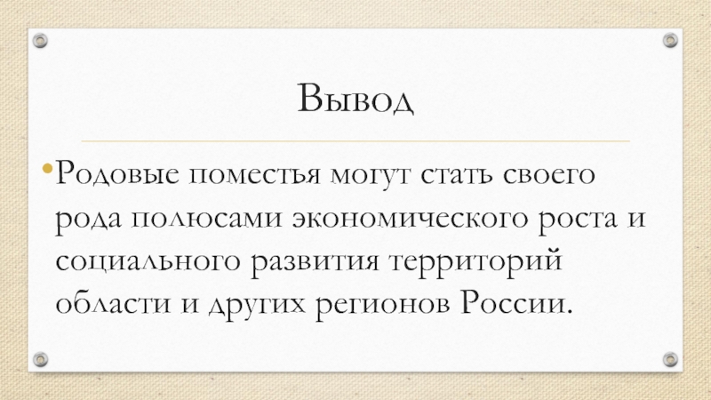 Родовые поместья могут стать своего рода полюсами экономического роста и