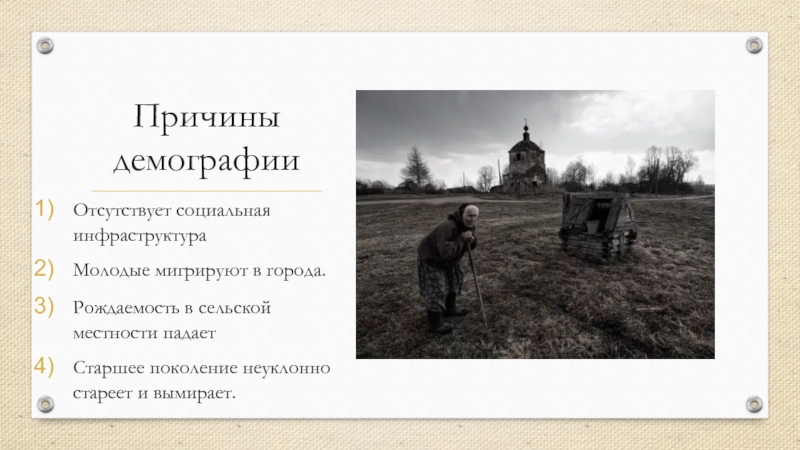 Развал социально-экономической основы на селе. Нет коллективных форм собственности и хозяйствования (колхозы и совхозы).