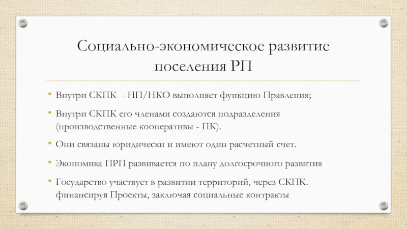 Государство участвует в развитии территорий, через СКПК. финансируя Проекты, заключая социальные контракты