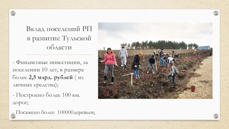 Слайд 8Вклад поселений РП в развитие Тульской области