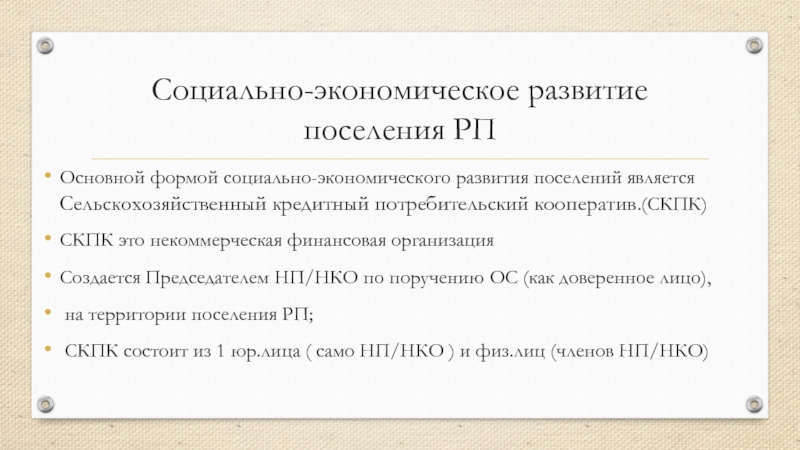 ( регистрация ПМЖ ) и ведения КФХ без образования юридического лица ( за счет участия в СКПК созданных в поселениях)