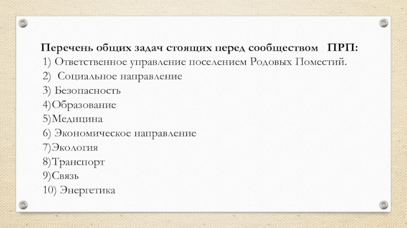 Слайд 15Перечень общих задач стоящих перед сообществом ПРП: