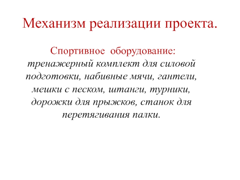силовой подготовки, набивные мячи, гантели, мешки с песком, штанги, турники,
