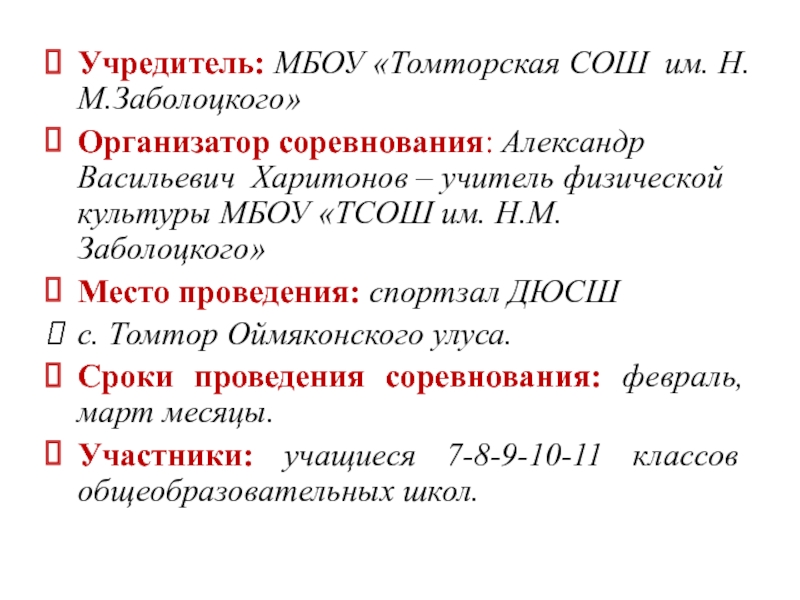 Слайд 2Учредитель: МБОУ «Томторская СОШ им. Н.М.Заболоцкого»