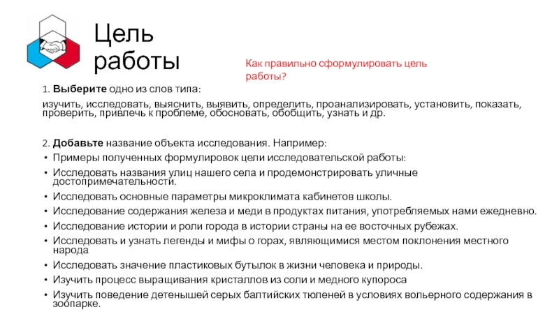 Как правильно сформулировать цель работы?
