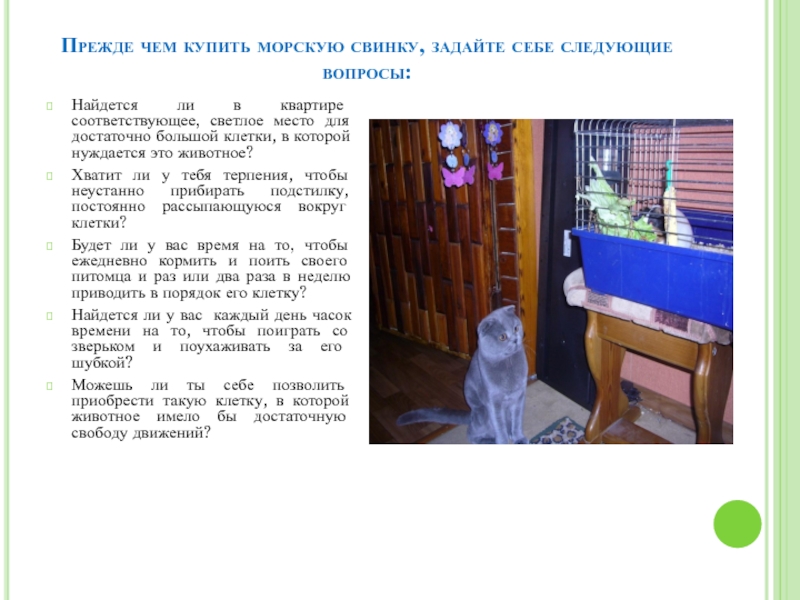 Слайд 11Прежде чем купить морскую свинку, задайте себе следующие вопросы: