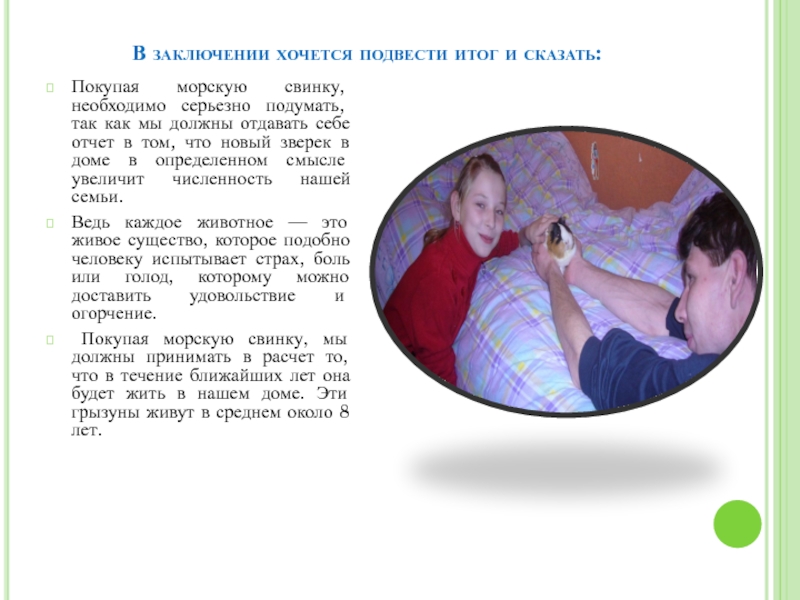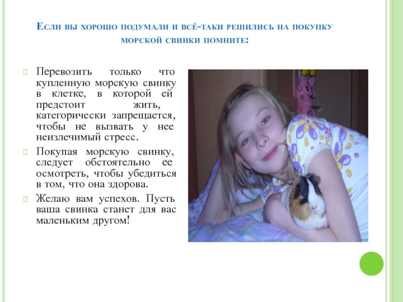 - составить рекомендации (советы) для тех, кто хочет стать хозяином морской свинки .