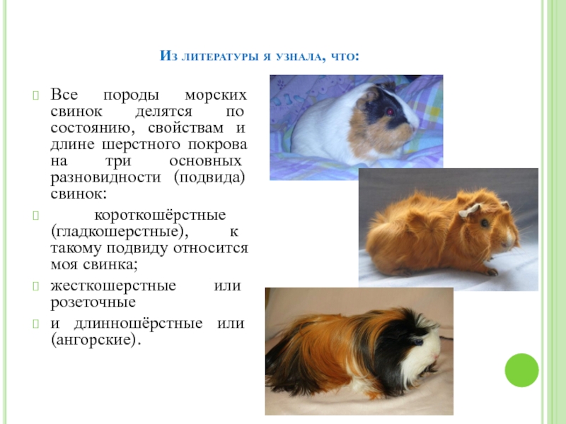 короткошёрстные (гладкошерстные), к такому подвиду относится моя свинка;