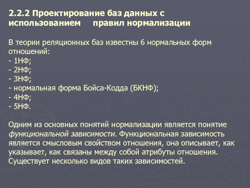 Слайд 132.2.2 Проектирование баз данных с использованием правил нормализации