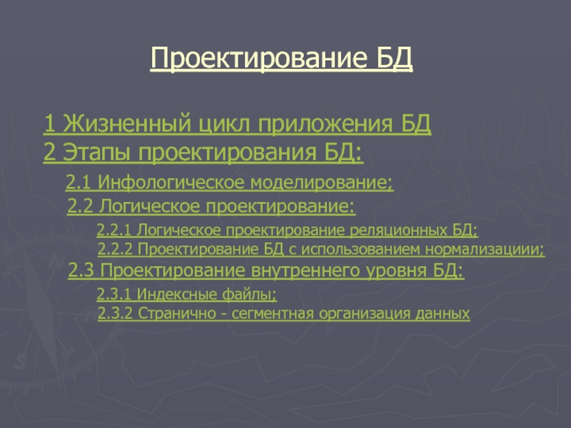 Слайд 2 Проектирование БД