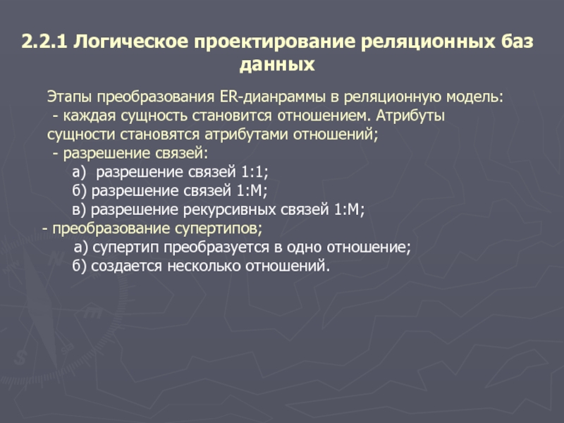 Слайд 122.2.1 Логическое проектирование реляционных баз
