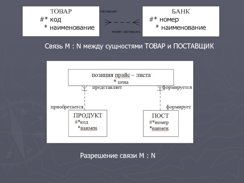 N между сущностями ТОВАР и ПОСТАВЩИК