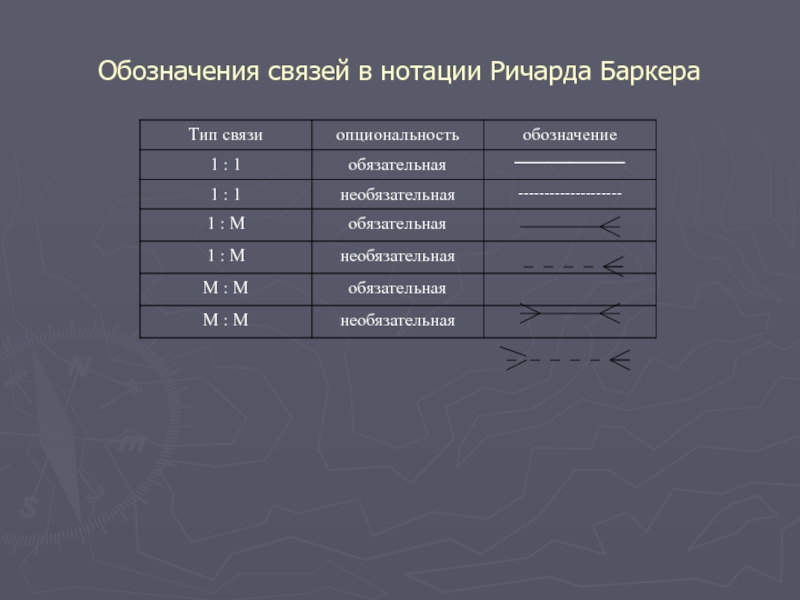 Слайд 5Обозначения связей в нотации Ричарда Баркера