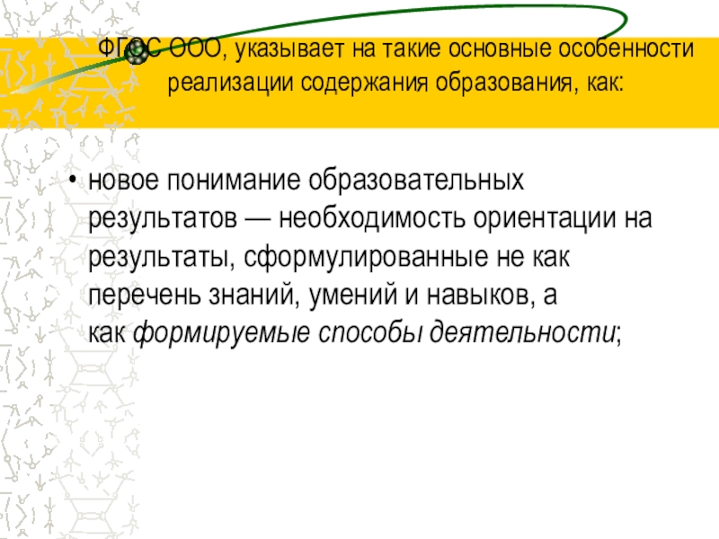 ФГОС ООО, указывает на такие основные особенности реализации содержания образования, как: новое понимание образовательных результатов — необходимость