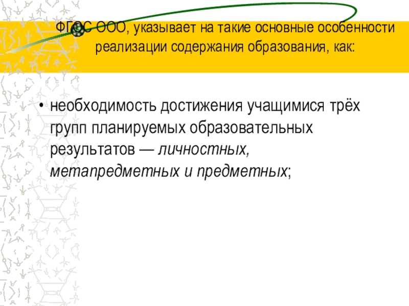 Слайд 3ФГОС ООО, указывает на такие основные особенности реализации содержания образования,