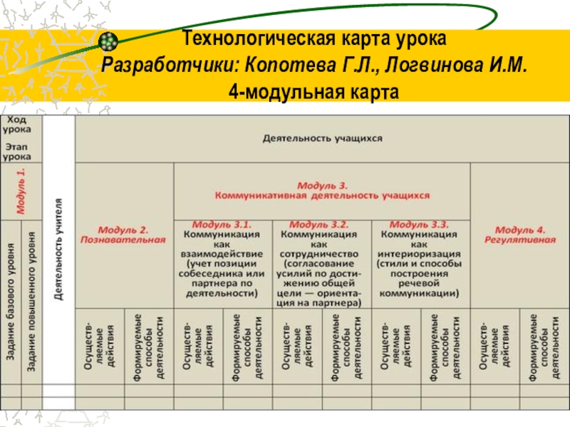 Технологическая карта урока Разработчики: Копотева Г.Л., Логвинова И.М. 4-модульная карта