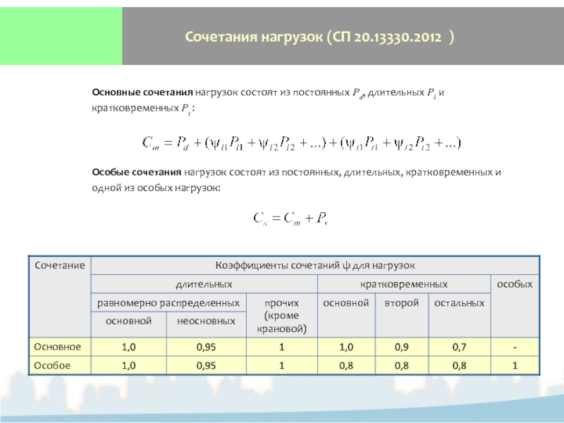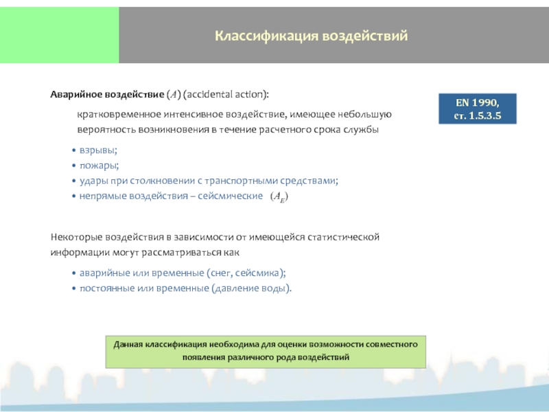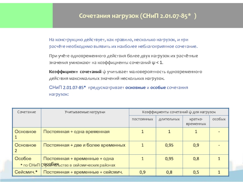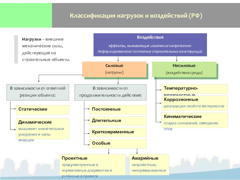 Особые – нагрузки, имеющие малую вероятность появления и небольшую продолжительность, но создающие чрезвычайные ситуации с возможными катастрофическими последствиями
