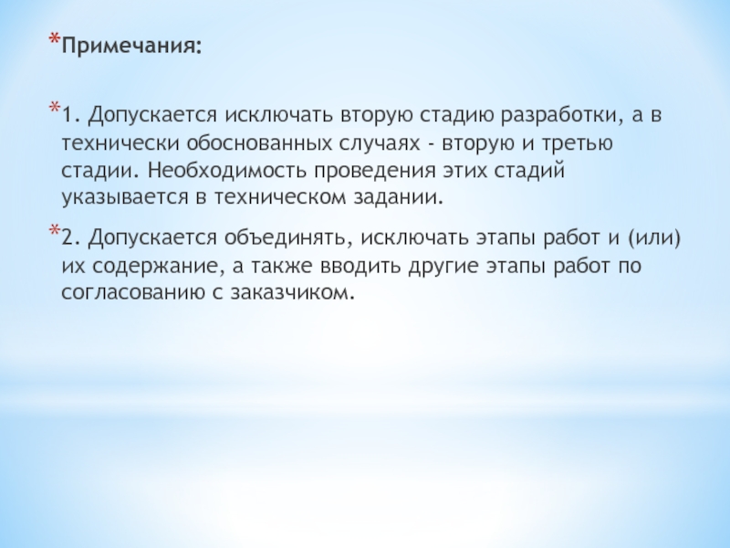 1. Допускается исключать вторую стадию разработки, а в технически обоснованных