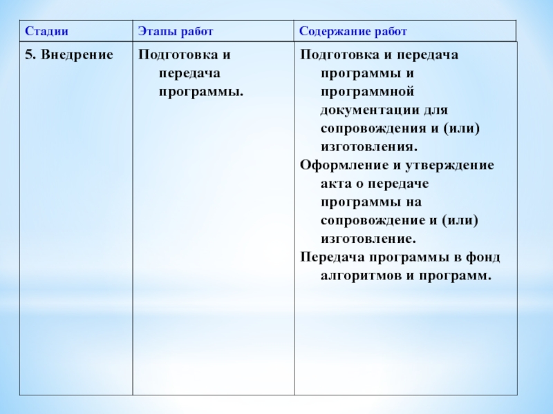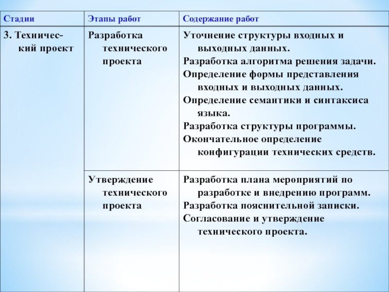 2. Стадии разработки, этапы и содержание работ должны соответствовать указанным в таблице.