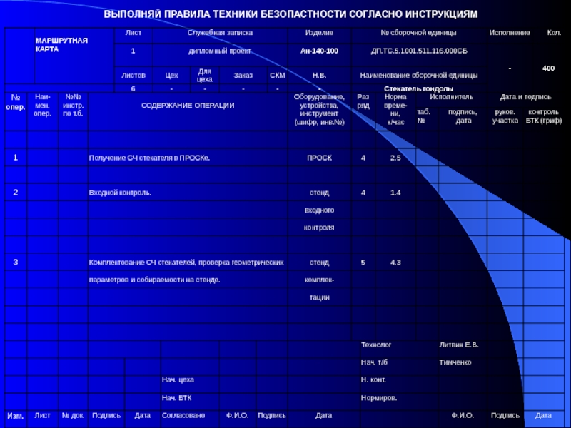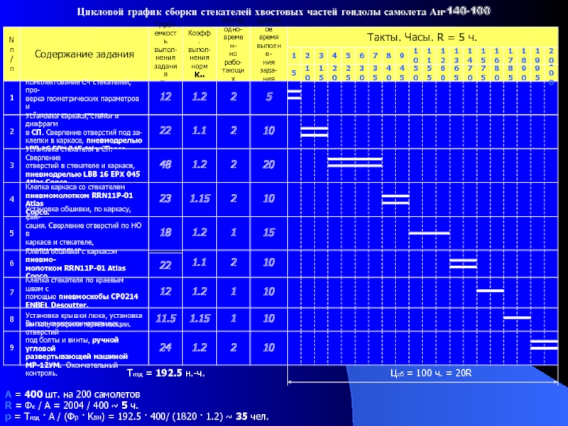 Цикловой график сборки стекателей хвостовых частей гондолы самолета Ан-140-100