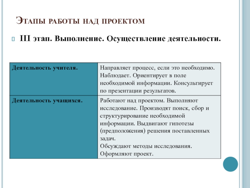 Осуществление плана (изучение и сбор информации, формулирование выводов, собственной точки зрения на решение проблемы);