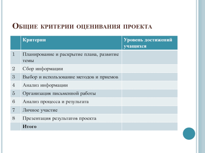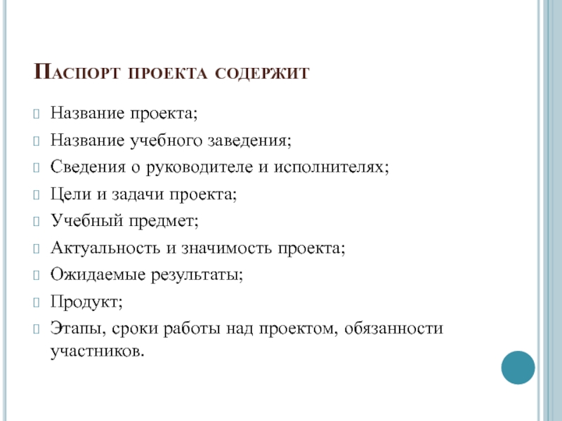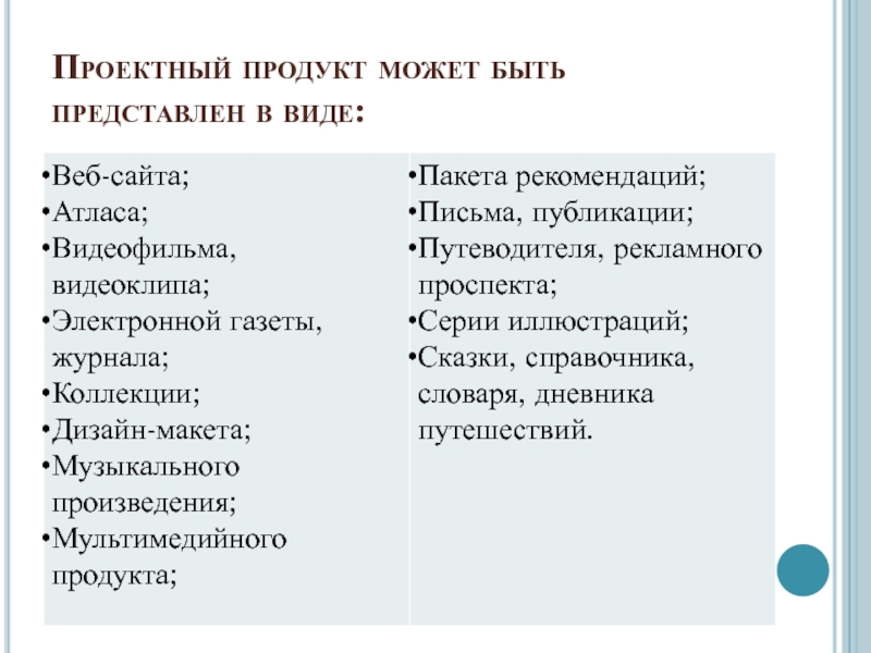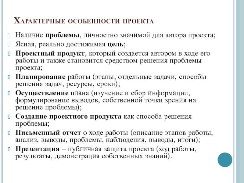 Презентация – публичная защита проекта (ход работы, результаты, демонстрация собственных знаний).