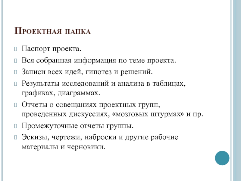 его Портфолио, т. е. папка, в которой собраны все рабочие материалы проекта, в том числе черновики, дневные планы.