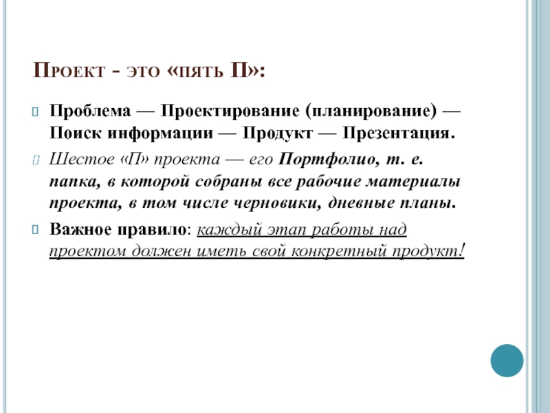 Важное правило: каждый этап работы над проектом должен иметь свой конкретный продукт!