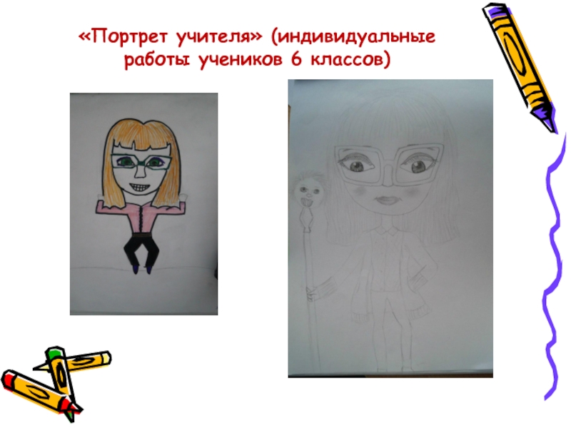 Слайд 7«Портрет учителя» (индивидуальные работы учеников 6 классов)