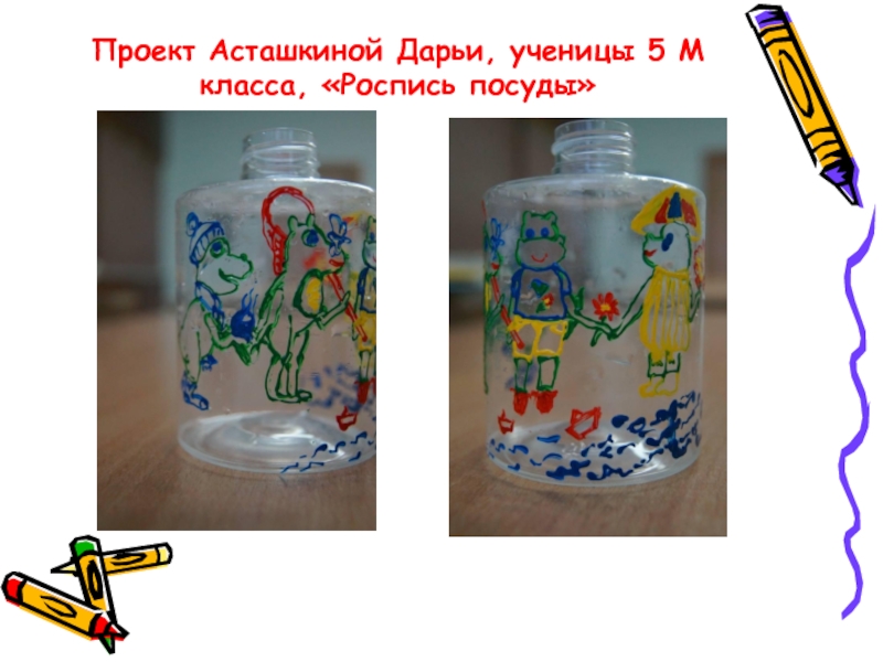 Слайд 13Проект Асташкиной Дарьи, ученицы 5 М класса, «Роспись посуды»