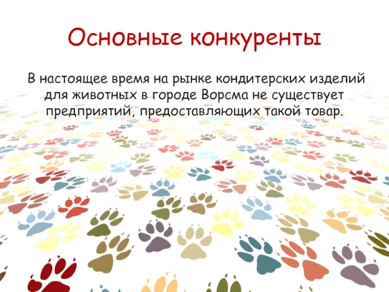 Основные конкуренты В настоящее время на рынке кондитерских изделий для животных в городе Ворсма не существует предприятий,