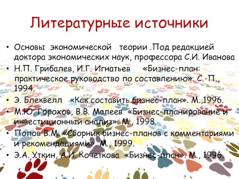 Литературные источникиОсновы экономической  теории .Под редакцией доктора экономических наук, профессора С.И. ИвановаН.П. Грибалев, И.Г. Игнатьев