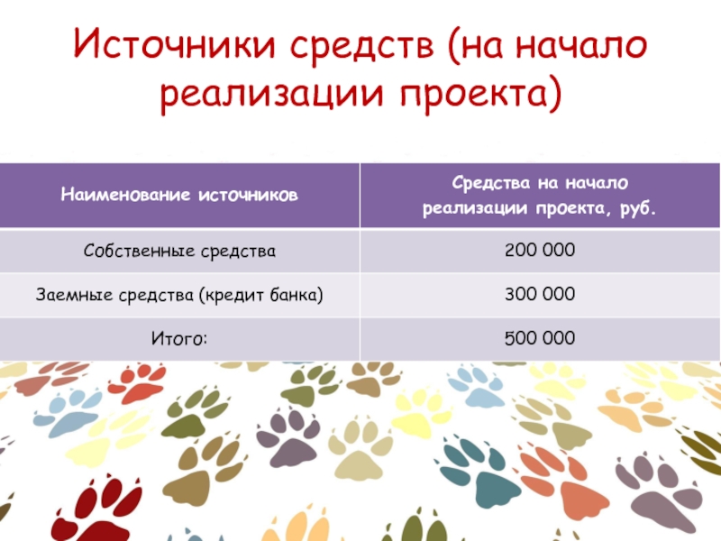 Слайд 16Источники средств (на начало реализации проекта)