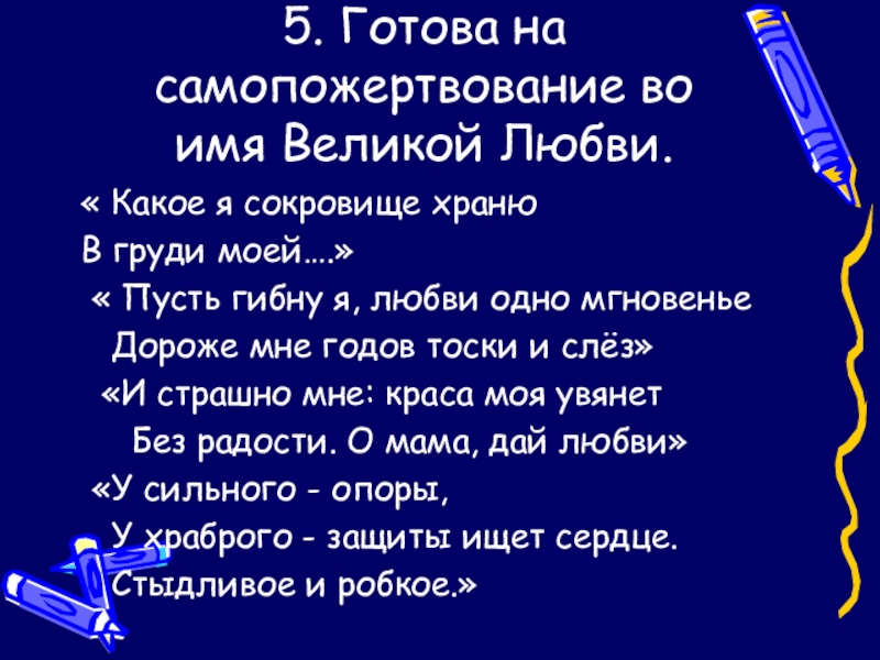 «Таи любовь от глаз Ярила-Солнца». Но жизнь без любви в царстве берендеев невозможна, и Снегурочка предпочитает нарушить запреты и умереть, чем жить без любви.