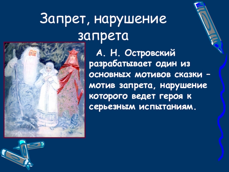 основных мотивов сказки – мотив запрета, нарушение которого ведет героя