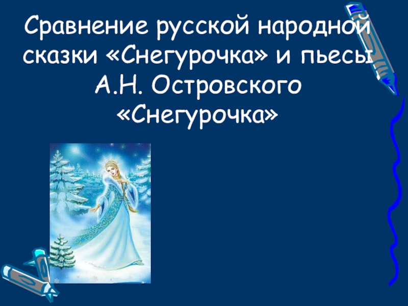 Слайд 9Сравнение русской народной сказки «Снегурочка» и пьесы А.Н. Островского «Снегурочка»