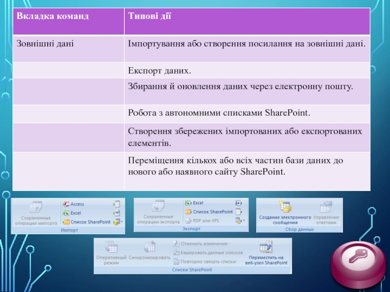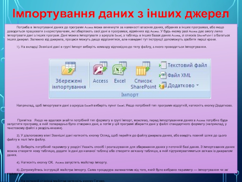 1). На вкладці Зовнішні дані в групі Імпорт виберіть команду відповідно до типу файлу, з якого проводиться імпортування.