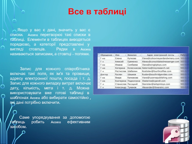 Саме упорядкування за допомогою таблиць робить Access ефективним засобом.