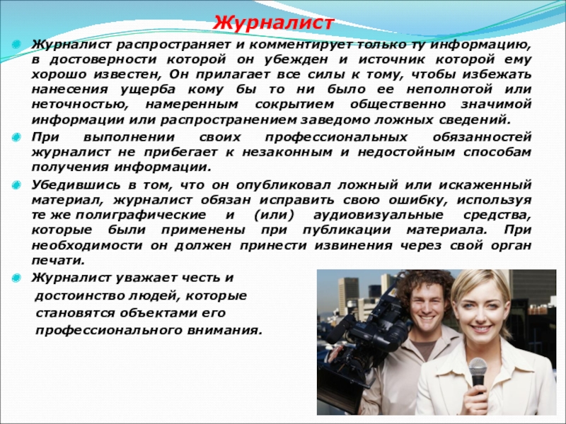 Журналист распространяет и комментирует только ту информацию, в достоверности которой