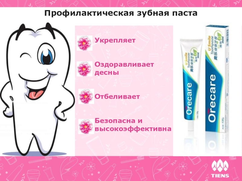 Клинические исследования показали, что пеонол в составе зубной пасты оказывает профилактическое действие против пародонтоза и симптомов повышенной чувствительности дентина