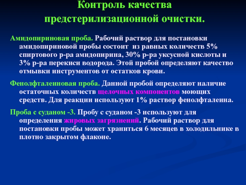 уксусной кислоты и 3% р-ра перекиси водорода. Этой пробой определяют качество отмывки инструментов от остатков крови.