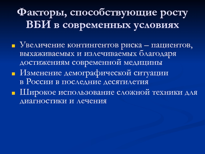 Слайд 6Факторы, способствующие росту ВБИ в современных условиях