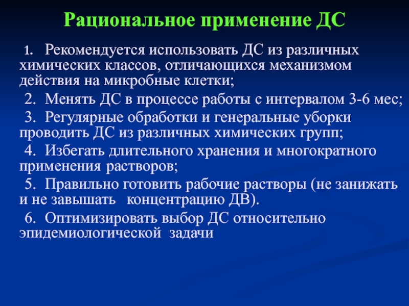 3. Регулярные обработки и генеральные уборки проводить ДС из различных химических групп;
