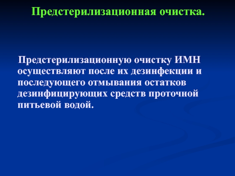 Предстерилизационную очистку ИМН осуществляют после их дезинфекции и последующего